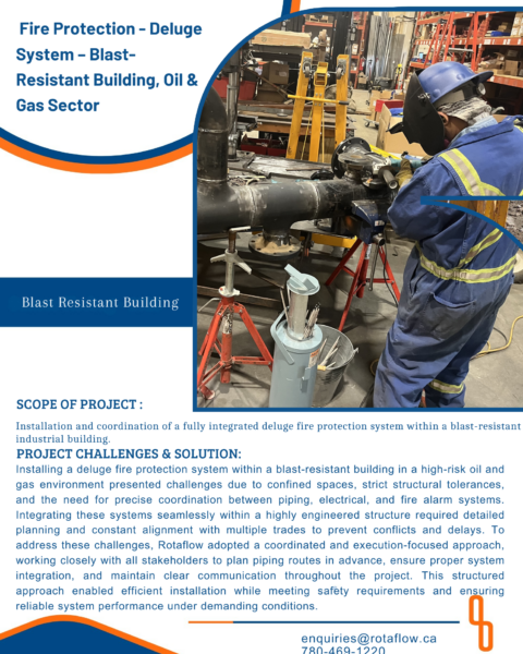 At Rotaflow, we are dedicated to delivering world-class fire protection solutions tailored to the unique needs of industrial and commercial operations. With over 30 years of experience, our in-house engineering and fabrication capabilities allow us to offer seamless, end-to-end services for projects of any complexity. Our licensed professional engineers excel in risk assessment, process safety engineering, and the design and implementation of advanced fire protection systems, ensuring compliance with ULC and NFPA standards while exceeding client expectations.
