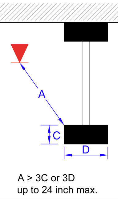 It should also be noted that for horizontally orientated impediments, the maximum clear distance from a sprinkler is 24 inches. This maximum clear distance does not apply to impediments in the vertical plane.