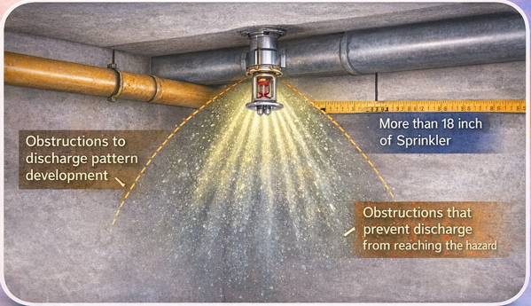 - Obstructions that prevent sprinkler discharge from reaching the hazard, Section 9.5.5.3
