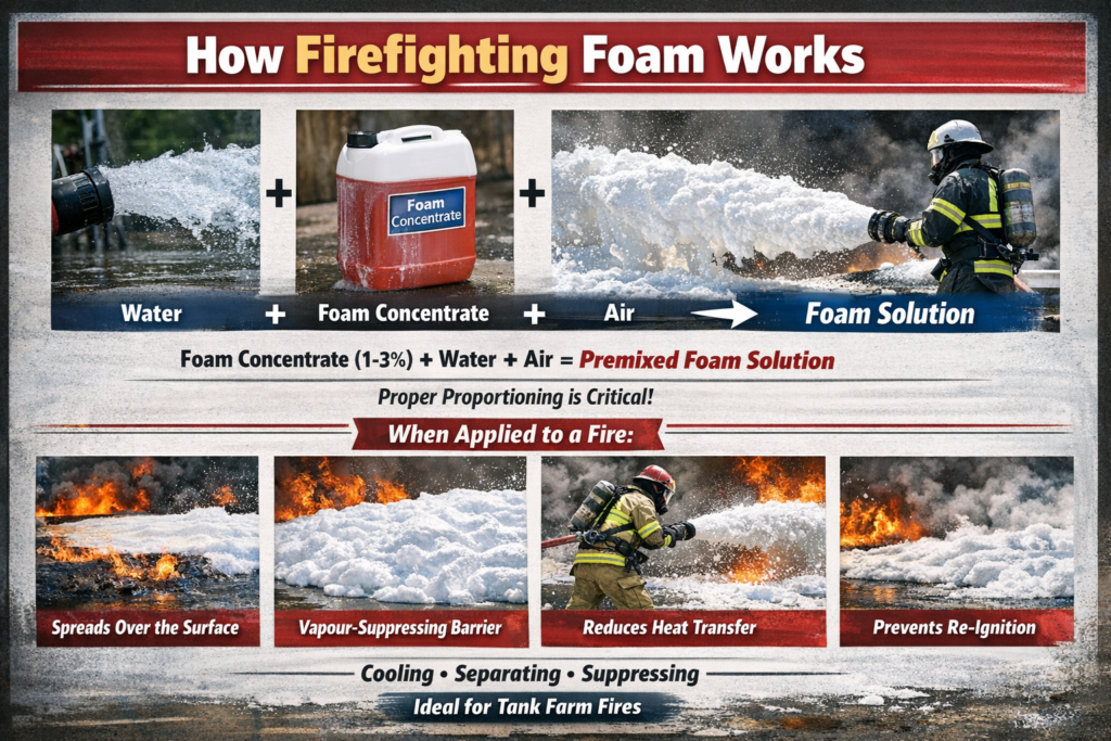 Foam is the most effective method of extinguishing fires at hydrocarbon storage facilities since it deals with the basic nature of liquid fuel fires. Foam creates a vapor-suppressing/cooling blanket over the fire that enables it to be controlled and to protect people, property and the infrastructure around them.