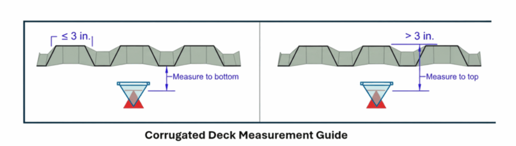 corrugated surface; however, if the corrugated deck’s depth exceeds three inches, the measurement must be taken from the high point.